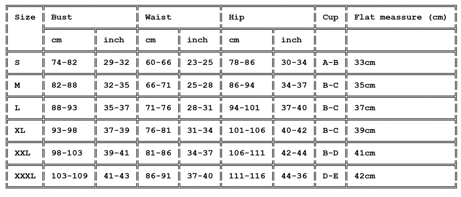Size Information: